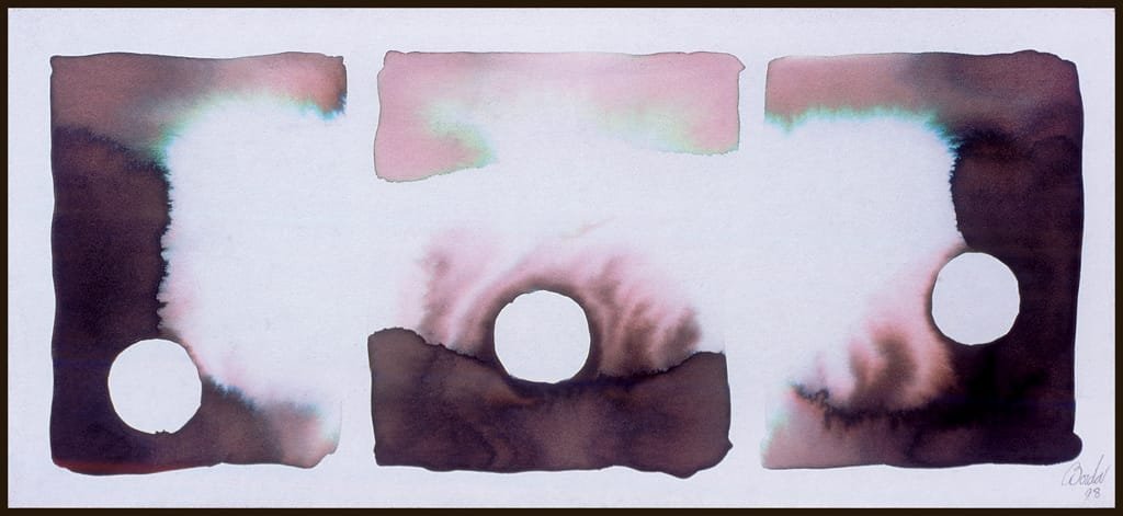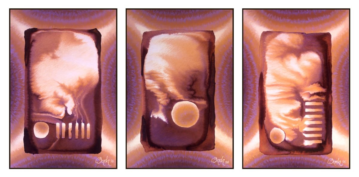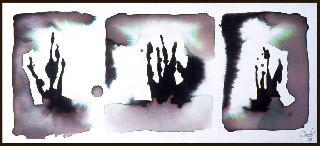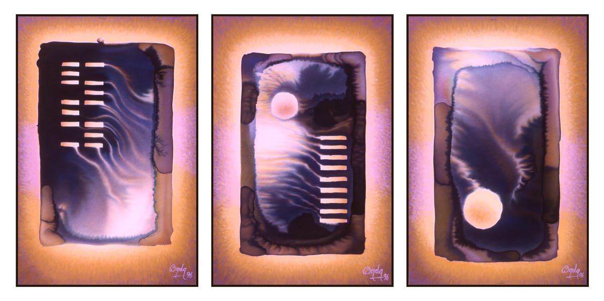 En esta serie de trabajos mi intención fue, saliendo de mis “PAISAJES INTERIORES”, dejar a un lado todo exceso en la interpretación de las manchas para dejarlas expresarse por sí mismas en una especie de gobierno del accidente y de las leyes de la física, donde mi papel sería como el de un oficiante o manipulador de los elementos, permitiéndome como máximo en algunas ocasiones cambiar o reinterpretar los colores a mi antojo, o poner los límites y las características del escenario en donde se llevarían a cabo los eventos por suceder.