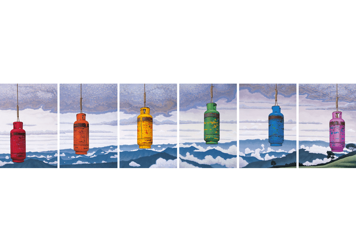 In 2005, faced with the perspective of an exposition, having, in that precise trance of my life, the opportunity to bring about a coherent group of works; my purpose, intention or common thread , when formulating this stage of my work, has been to bring together a series of works opposed and interrelated by two basic characteristics: On one hand war or assault objects, conclusive or potential aggressors, as have been the bullets or different projectiles, sharp objects, gas cylinders, designed for domestic use but transformed into bombs.